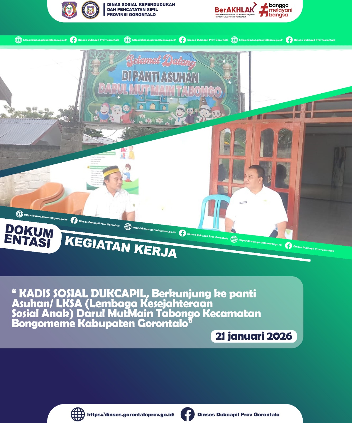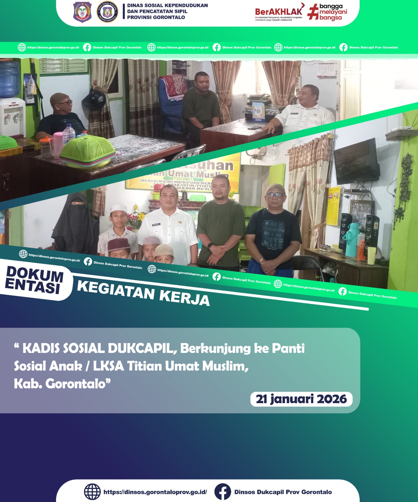 KADIS SOSIAL DUKCAPIL, berkunjung ke Panti Asuhan Anak / LKSA Titian Umat Muslim, Kab. Gorontalo...