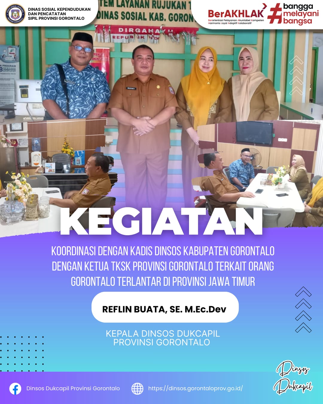 Koordinasi dengan Kadis Dinas Sosial Kab. Gorontalo dengan Ketua TKSK Provinsi Gorontalo Terkait Ora...